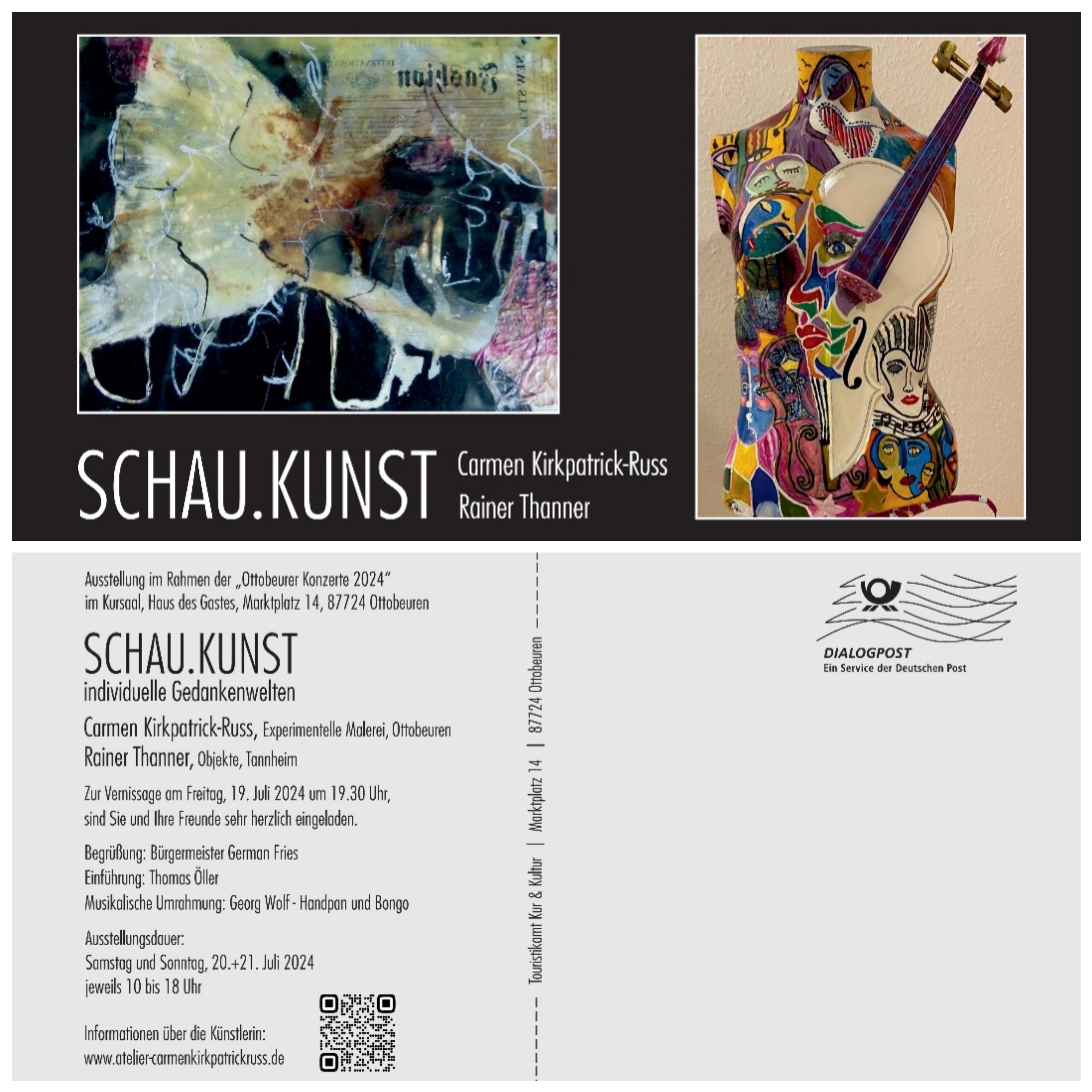 im Refektorium des Hohen Schlosses, Einlass ab 18 Uhr. Bernhard Kerler, Bürgermeister von Bad Grönenbach, spricht zur Begrüßung. Die Laudatio hält Margareta Böckh, Zweite Bürgermeisterin von Memmingen. Die Sängerin Alexandra Jörg unterhält musikalisch.